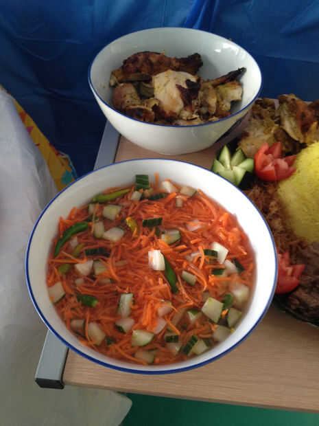 Ninguna medición aquí. Todo lo que tienes que hacer es cortar las zanahorias sin piel en tamaños matchstick, coloque en un tazón. Corte redondeos pepinos sin pelar y cortar la parte exterior de cada ronda en 4 palos, desechando la parte media (semillas), coloque en el recipiente. En cuartos de cebolla (si te chalotas, son perfectos, si no, cebolla hará). Añadir tantos chiles verdes como quieras. Verter azúcar sal agua y vinagre, mezcle todo. Ajustar el sabor, dejar reposar en la nevera al menos 2 horas o durante la noche.