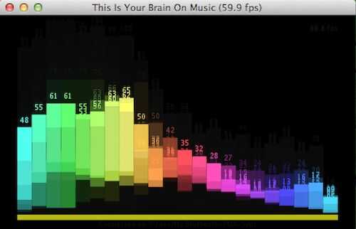 Procesamiento de naves con la biblioteca mínima para lidiar con audio y allí fue un ejemplo previstas usando el Fast Fourier transforma (FFT) para analizar el espectro. Encontré la salida para ser muy no-intuitivo, así que escribí un visualizador de música para que me ayude a "ver" la música y tratar de identificar visualmente Cuándo había producido un golpe.