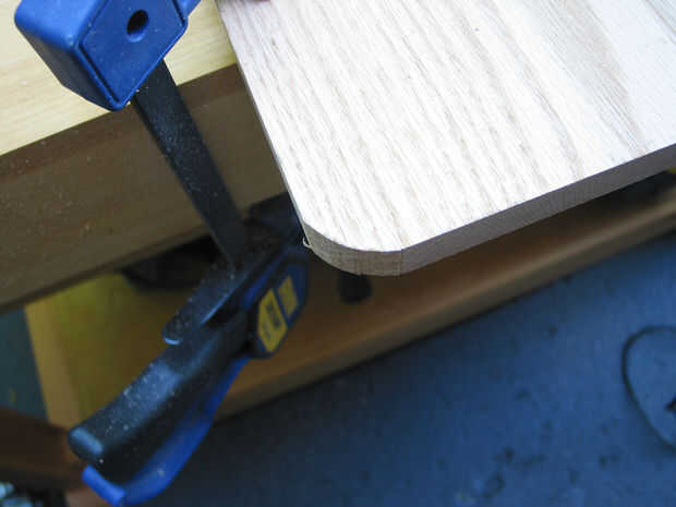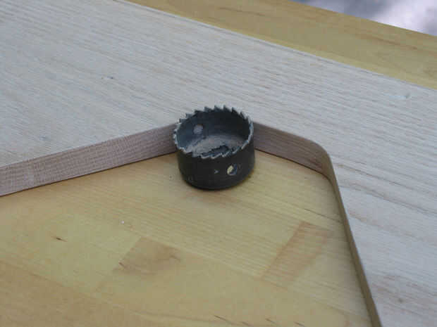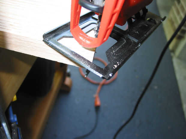 2) tomar una sierra de calar y corte el patrón y las esquinas en la tapa y las piernas. (Utilice el cortador del agujero para cortar las curvas internas para el top).