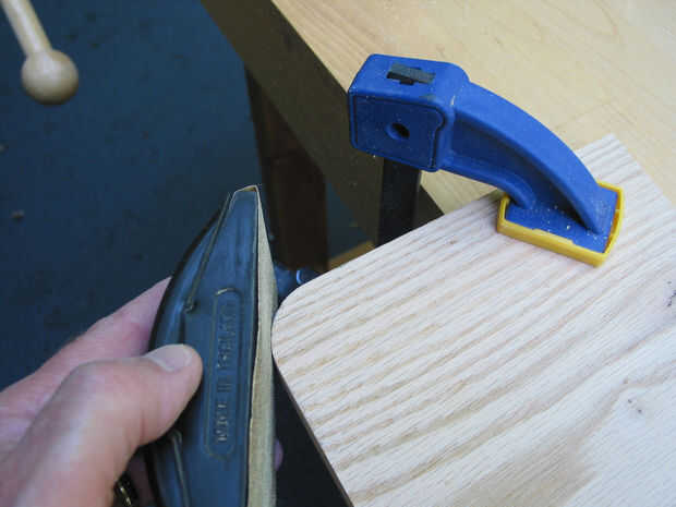 3) arena a mano hasta que se han eliminado lisa y ninguna marca de quemadura.