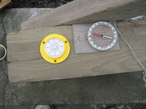 Aquí hay un par de ideas. Poner el dispositivo en un tope concreto de una pared que es muy plana, pero la madera está un poco torcida. Así que usar un nivel de burbuja para mantener nivel. También miré el deinclination. Victoria es cerca de 20 grados al este del norte verdadero. Y encontré mi brújula y usado para apuntar el helióstato mejor.