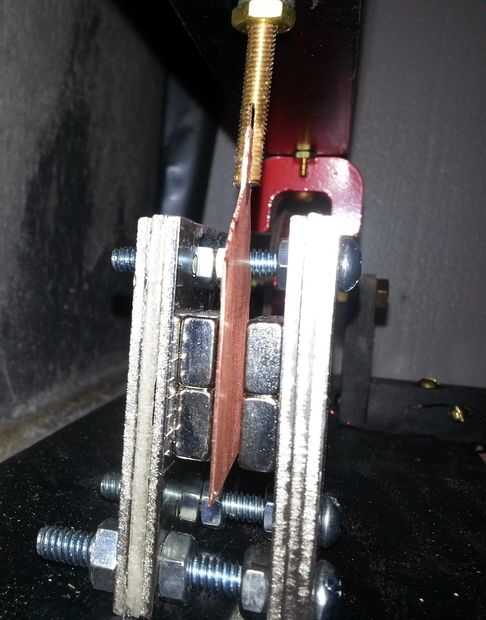 La lámina se hace de la hoja de cobre de calibre 24. Calibre más pesado puede ser utilizado, pero no más claro. Es 1 3/4 en (4,5 cm) de largo no incluyendo el hombro y cuello y en 1 1/4 (3,2 cm) ancho. La hoja puede ser soldada o pegada en una ranura en el perno.