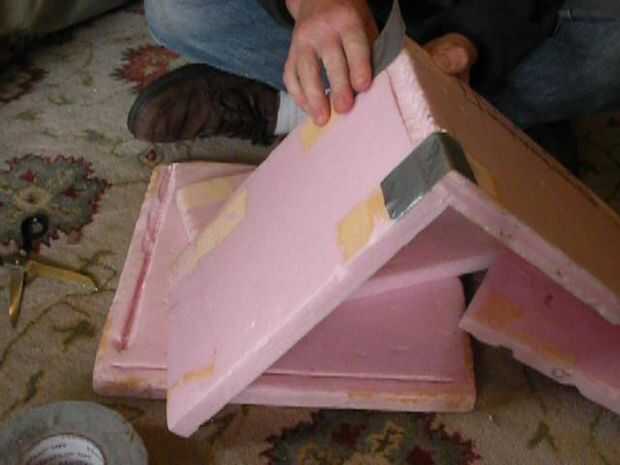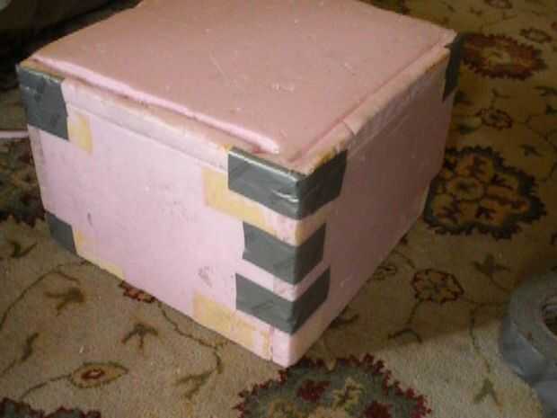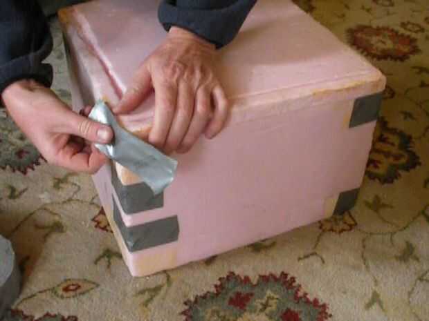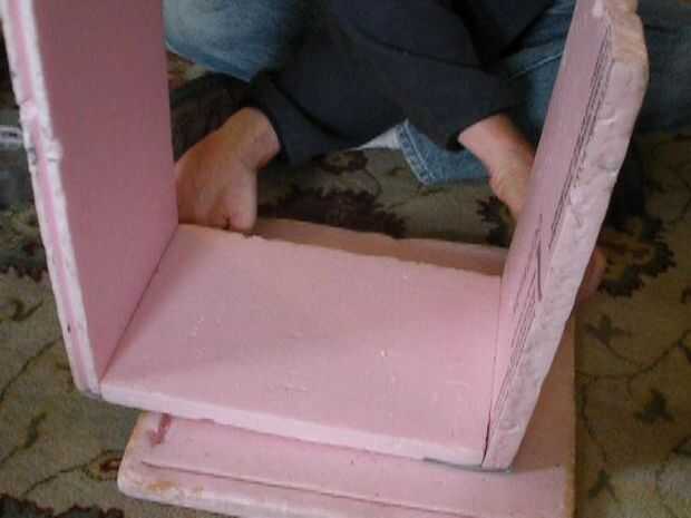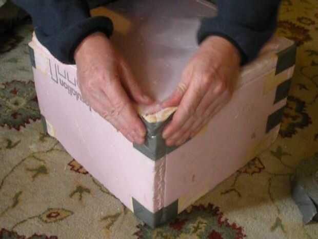 En este paso, el cuadro base de la cámara de la tornado está montado con cinta adhesiva y el aislamiento paneles se describe en el paso 1: