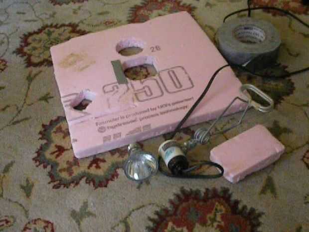 La luminaria de halógeno se une al panel superior de la cámara de tornado con cinta aislante: