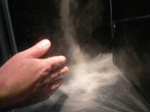 Interactuando con el tornado insertando la mano en una de las tomas de aire (ver out no para derrocar a la cámara como en este diseño no es nada aguantando la parte superior):