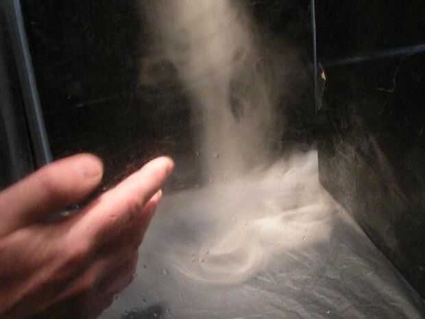 Molestar a la vorágine de esta manera hace que el aire fluya más parecido a lo que sucede con un tornado real. El aire es raramente totalmente todavía y muchos de los giros interesantes son causados por disturbios leves en el aire que entra en el vórtice.