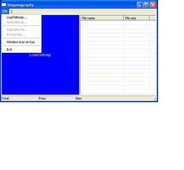 Acceder a su software primero. Vaya al lugar donde se extrae el contenido y abra el archivo ejecutable (aka. archivo .exe) con la etiqueta "stegas" como en la imagen 1. Luego verás una insignificante ventana pop-up. Ampliar un poco para que veáis mejor lo que estás haciendo. Para cargar la imagen donde pones los datos, haga clic en "Archivo" y luego haga clic en "Cargar... mapa de bits" y seleccione cargar la imagen deseada. Ahora que tienes esa imagen, desea que los datos allí. En primer lugar, otra vez, haga clic en "Archivo" y luego haga clic en "Agregar archivo de datos..." y seleccione Abrir la pieza de datos que desee en allí. Hay información adicional que le gustaría ver en la imagen 3 que tiene una imagen de un rudimentario dibujo de una casa y datos simples.