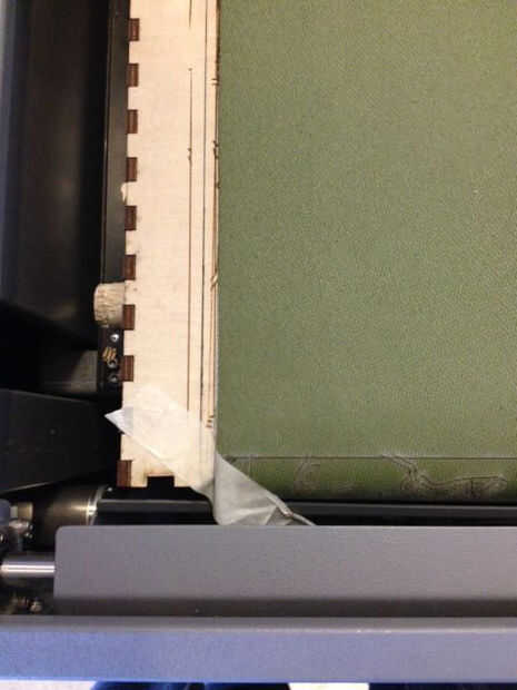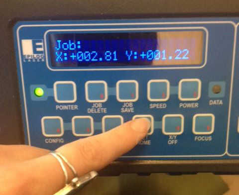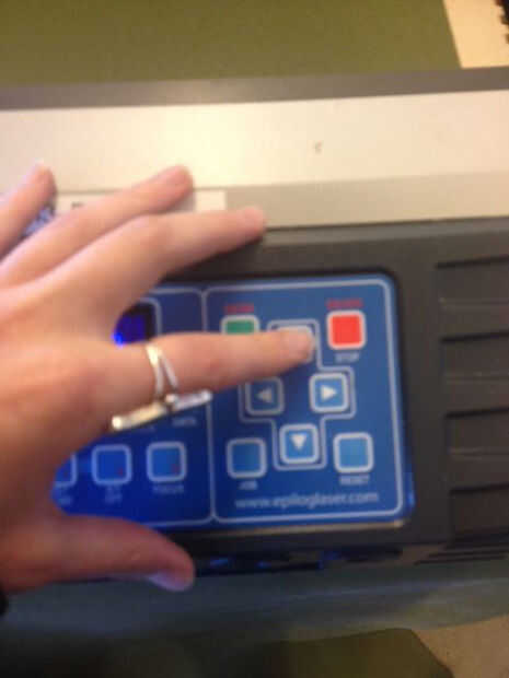- El nombre de trabajo de impresión debe destellar en la pantalla de la cortadora láser.