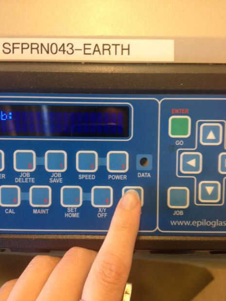 - La cabeza del láser comienza a viajar horizontalmente a través de la estera. Debe permanecer y vigilar el proceso para asegurarse de que nada salga mal (Recomiendo agarrar una silla!)