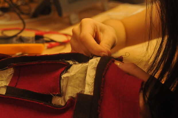 Lusha y mayo crearon un "texto-Mat". Esta superficie puede permitir al usuario escribir y enviar mensajes a través de los pies. Este texto-mat está diseñado para enviar mensajes secretos durante reuniones o clases. El diseño utiliza tela conductora e hilo de rosca, así como un tablero de flora. El programa contiene 7 frases predefinidas. El usuario puede presionar un botón para seleccionar la frase apropiada y luego un botón final para enviar.