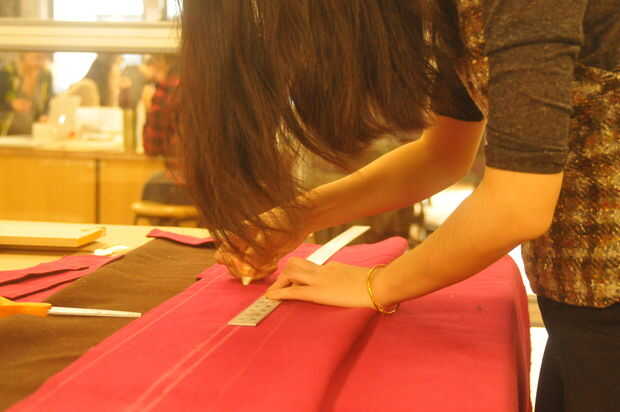 a continuación, cortamos la lana, fieltro y telas conductoras a los tamaños deseados.