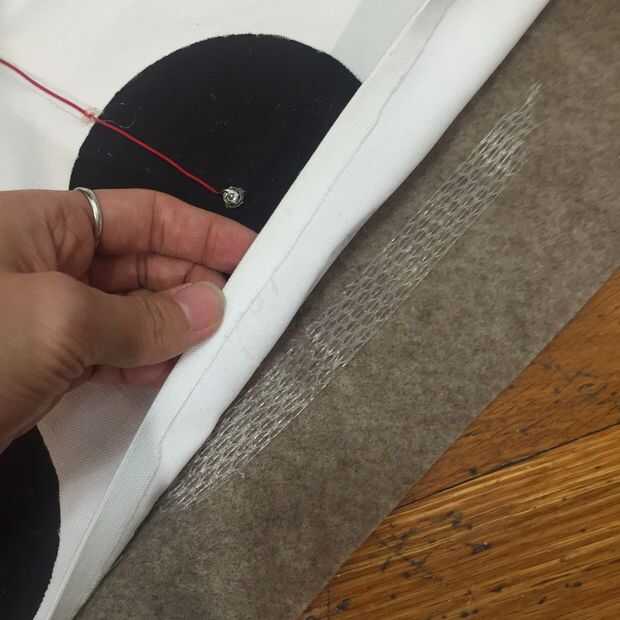 Utilice un hierro y hierro en adhesivo para pegar el circuito a la capa inferior.