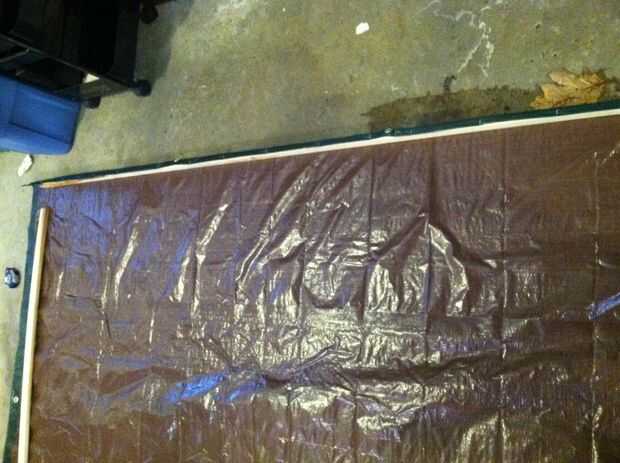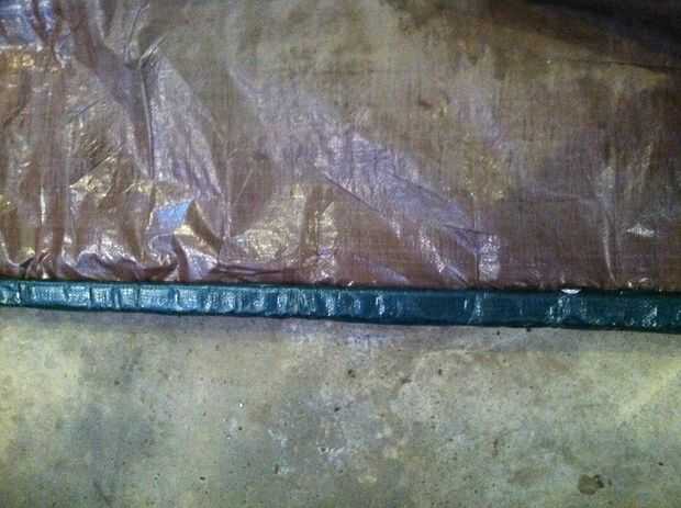 Sujete el borde de la lona y enrollar el perno y la lona en el borde corto de la viga. Ahora la grapa a lo largo de ese borde superior.