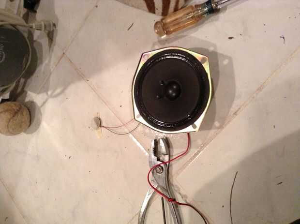 El altavoz estaba sostenido por cuatro tornillos y salió bastante fácilmente. Mis altavoces tenían algún tipo de pequeño disco que supongo iba a ser un altavoz de agudos, pero parecía bastante ineficaz (uno estafado, realmente no puede decir la diferencia). Si los altavoces que se obtiene tienen tweeters, después no intentan desconectarlos cuando usted toma el altavoz fuera de su recinto.