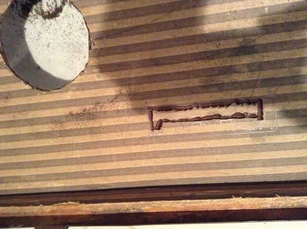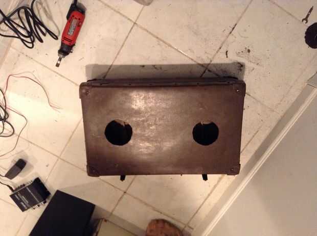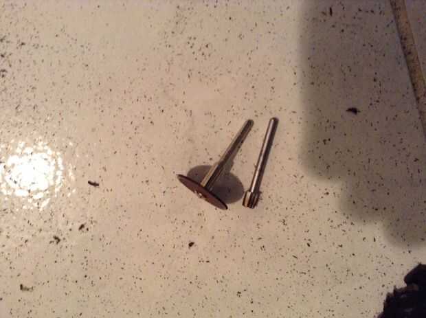 Los agujeros que corte utilizando un accesorio de corte de metal de plástico blando para la Dremel. Yo usaba ese tipo de rastro donde iba a cortar, entonces utiliza un disco de corte simple. Por suerte, la fibra vulcanizada es bastante suave, después del corte que podría utilizar el accesorio de la lijadora para hacerlo un poco más mirando.