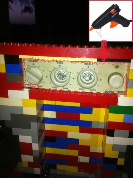 Pegué la parte delantera, el Panel de Control usando hotglue en los ladrillos de Lego alrededor de él.