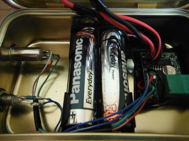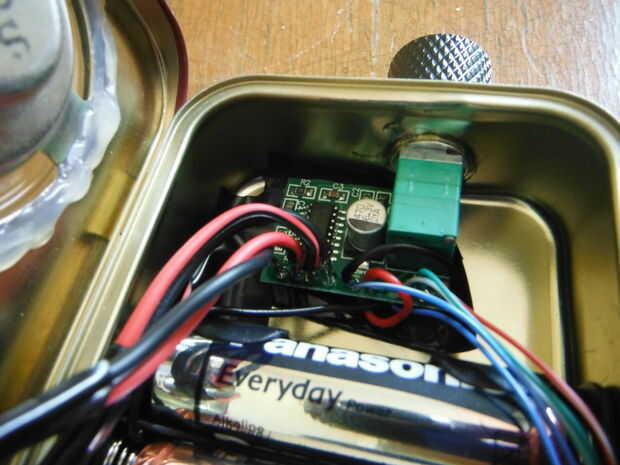 Suelde los cables L, R y GND desde su conector de 3,5 mm a la entrada del amplificador. Luego, soldar los cables positivos y negativos de los dos altavoces a las salidas positivas y negativas del amplificador. Luego soldar sus terminales batería titular positivo y negativo a la potencia del amplificador con el interruptor en serie y su LED en paralelo. Mi amplificador tenía un interruptor, por lo que no es necesario un interruptor separado, pero tenía que aprovechar mi interruptor incorporado para conectar el LED.