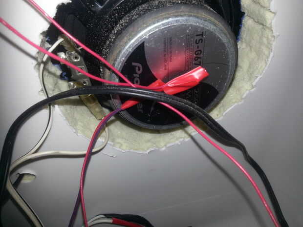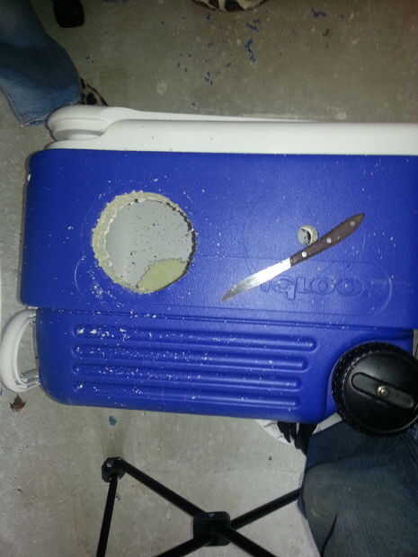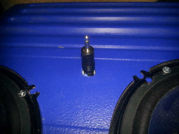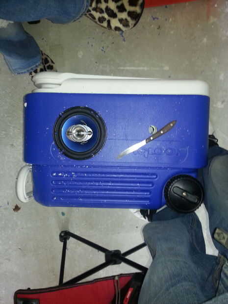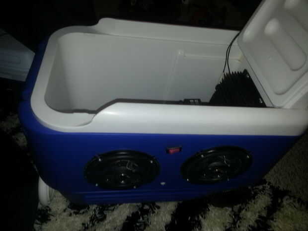 Una vez tienes todos los suministros para el refrigerador, que usted querrá utilizar a un sharpee para marcar los agujeros para ser cortado por los altavoces, el interruptor y el conector de audio estéreo. He trazado los altavoces y entonces utiliza una sierra caladora para cortar los círculos para los altavoces. Luego había enroscada les en la nevera. También entonces yo cortar un agujero para el interruptor entre los altavoces. Luego recortar un agujero para el cable de audio puede venir lanzó y no tener que cerrar la tapa del cable.