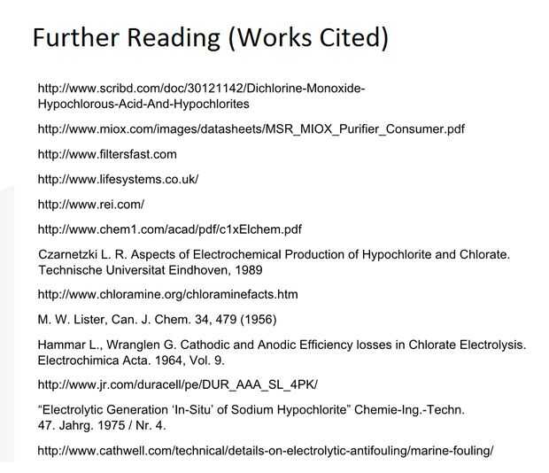 Hay algunas maneras para catalizar la descomposición de estos productos, como por ejemplo con óxido de rutenio, pero es clase de un tramo para el experimento doméstico o sobre supervivencia. De hecho, este tutorial es un poco avanzado, y si usted ha hecho esto ahora, probablemente aprendiste algo sobre electroquímica. Como si no has tenido suficiente ya, pongo una breve lista de algunos enlaces y documentos podrían procesar más información sobre el cloro-álcali.