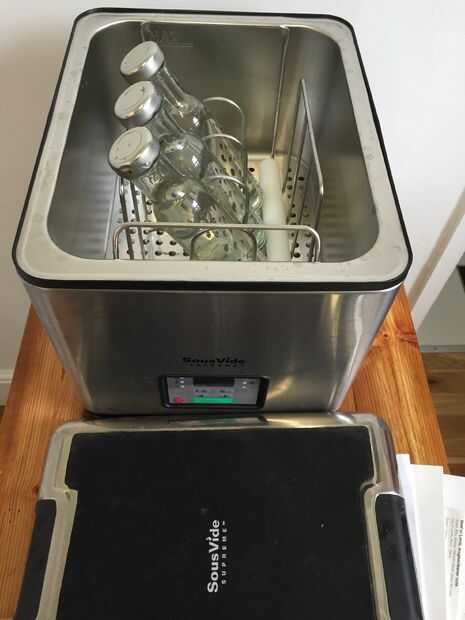 A Sous Vide es un baño de agua de temperatura controlada. Se mantiene una temperatura muy constante y es un aparato ideal para incubar el yogurt.Utilicé una combinación barata de una olla estándar y un controlador Dorkfood Sous Vide.Con estas instruc