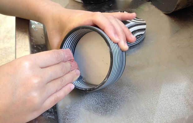 Ahora la parte no tan agradable: lijado. Usé papel de lija así como ruedas de pulir con Dremel. Lijado húmedo se recomienda para reducir la cantidad de resina polvo tanto como sea posible. Cuando es necesario lijar en seco, es importante limpiar todo el polvo inmediatamente después del trabajo. Volar el polvo de resina epoxy es muy dañino para el cuerpo humano.