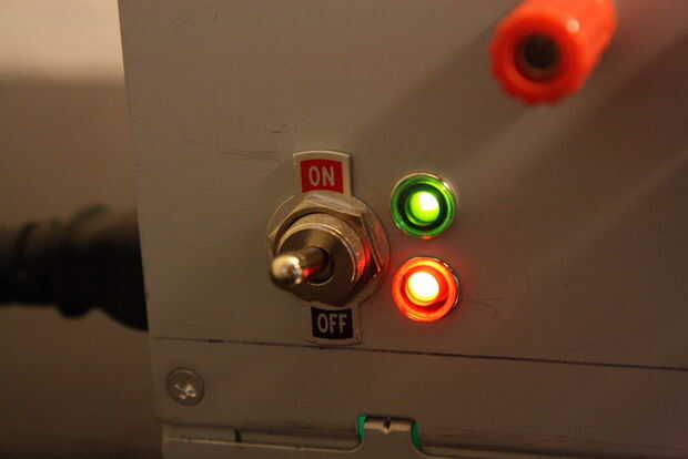 He añadido un interruptor de palanca, está conectado un LED rojo que indica lo (también conocido como peligroso si abre) y un LED que indica el poder se ha encendido.