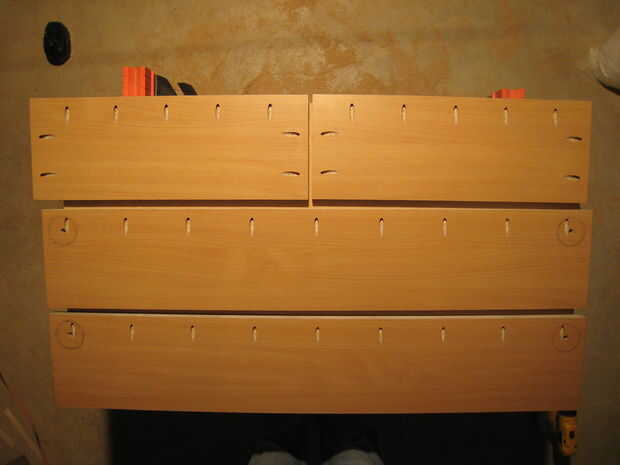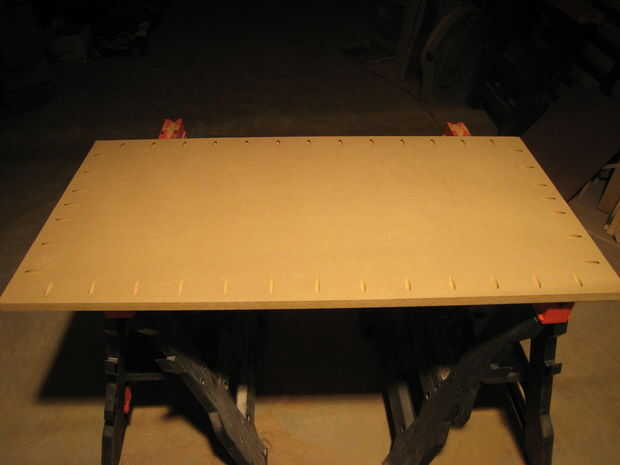 OK, por lo que una fue un poco las tuercas con los tornillos de bolsillo. Hay 76 de ellos en esta tabla... Realmente no sabia como mucho espacio de separación, y no iba a ser capaz de pegar la madera por el laminado. Haciendo este muchos en el futuro me gustaría conseguir uno de los mejores conjuntos de Kreg. Guardo para la próxima vez.