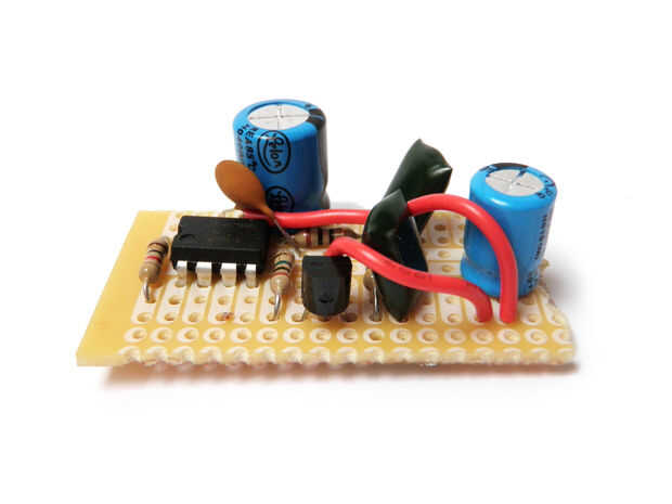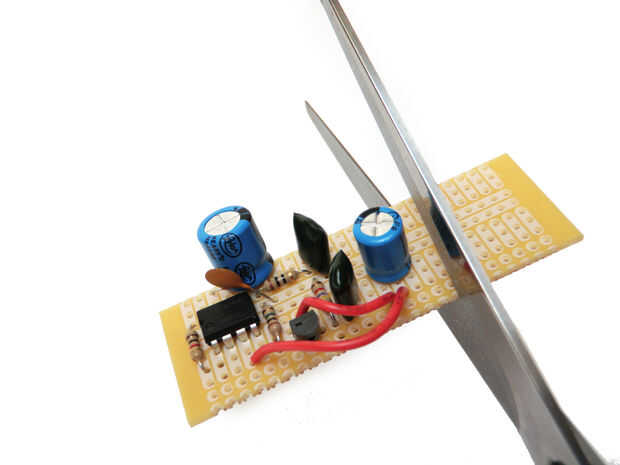 Una vez que se ha construido la mayor parte de su circuito. Ajuste la Junta tan pequeña como sea posible de tal manera que no interfiere con el circuito en sí mismo y recuerden dejar soldadura unos cojines para las partes que todavía se tiene que conectar.
