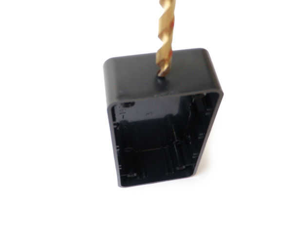 Perfore un orificio de 1/4" donde la marca está en el lado opuesto de la caja.