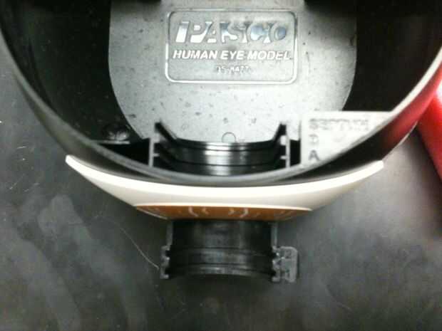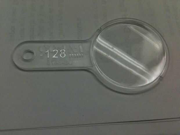 Ahora colocar lente cilíndrica de yer-128 mm en la ranura A. Al lado de t' mango lente marcada con la longitud focal debe orientarse hacia la fuente de luz. Este ojo tiene un astigmatismo matie.