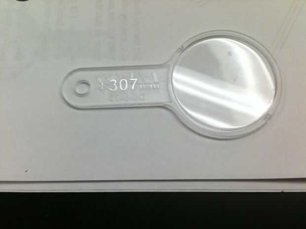 Ahora a corregir el astigmatismo con lentes, que, el capitán, no puedo pagar por mi equipo horrible. Coloque la lente cilíndrica de +307 mm en la ranura 1. El lado de la manija de la lente marcada con la longitud focal debe ser hacia la fuente de luz.