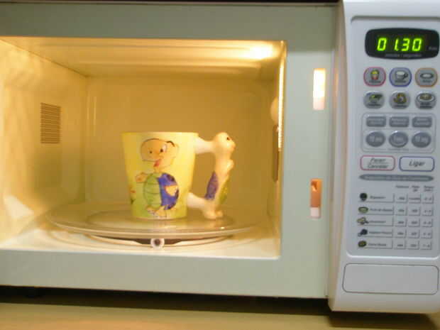 Vierta la mezcla en 2 tazas y poner en el microondas durante 1 minuto y 30 segundos.