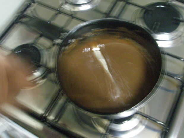 Ten cuidado, después de este punto, comenzará abrasador en la parte inferior, así que apague el fuego y verter en un bol.