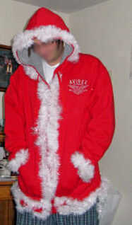 Ya está recibiendo la caída para fijar la "piel" o la guirnalda a la capucha. Utilizar los mismos métodos que en la muñeca, o inferior, para acoplar a la capucha. Asegúrese de comenzar cerca de los hombros, alrededor de 1 pulgada desde la parte superior del cuello y colocar las piezas de un lado a otro, fui de izquierda a derecha pero eso era sólo preferencia.
