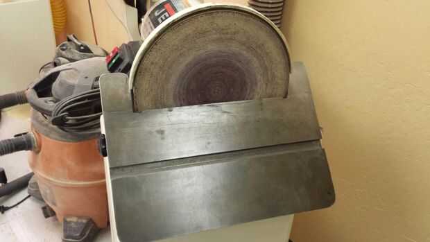 Yo también 'redondeado' los bordes de todas mis esquinas exteriores para prevenir el daño antes mencionado shin. Para ello puse la lijadora de disco a 45 grados y aplica los bordes a la lijadora de disco. Nota de seguridad: Cuando colocando la madera en una lijadora de disco haga contacto con el disco en el lado hacia abajo. Si usted viene en contacto con el otro lado primero su material puede levantar de tus manos y lastimarte.