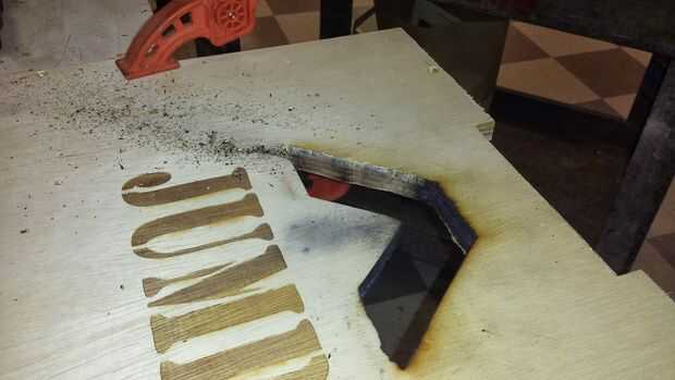 Debido a mi intento fallido por láser corte a través de la madera que tenía que limpiar mi los bordes quemados con la sierra caladora.