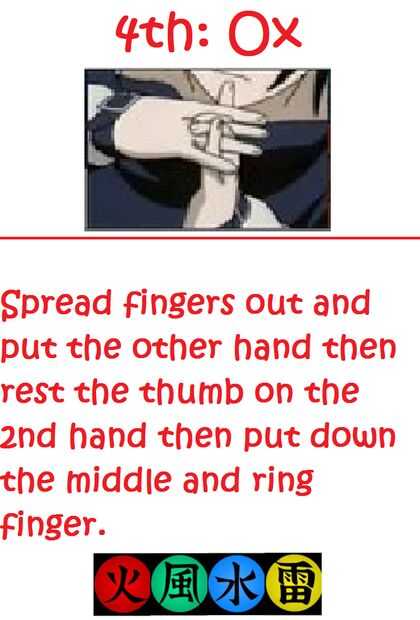 Estilo de fuego: Phoenix Flower Jutsu Handsigns (4 / 7 paso)