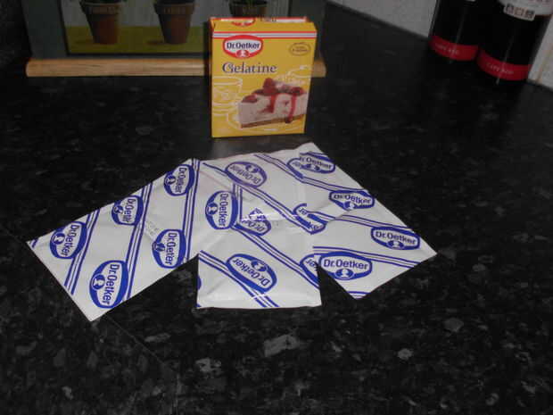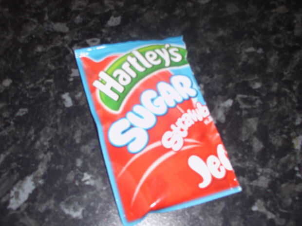-1 bolsita de hartleys fresa gelatina en polvo (Nota Si cambia el sabor de la gelatina va a cambiar el color del producto). Estoy usando gelatina libre de azúcar pero funciona normal mejor.