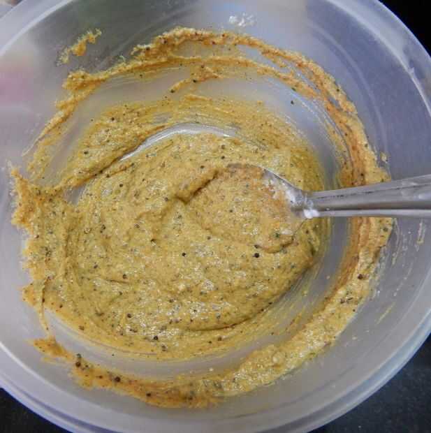 Añadir todos los ingredientes a una licuadora y añada 2 cucharadas de aceite de mostaza y moler a una pasta suave.