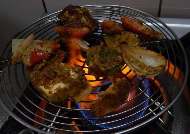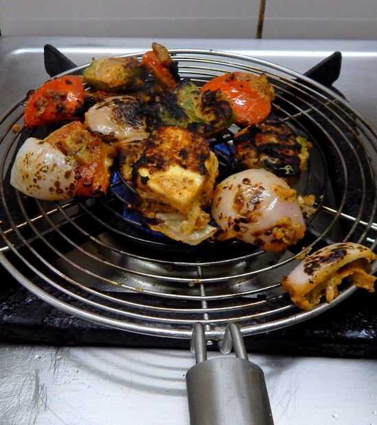 para un efecto brasa necesita usar ya sea un tandoor / barbacoa o usted puede sólo tostamos en la llama de un horno de estufa para el mismo efecto smokey hasta u conseguir ver bonitos lugares carbonizados negro en la superficie.