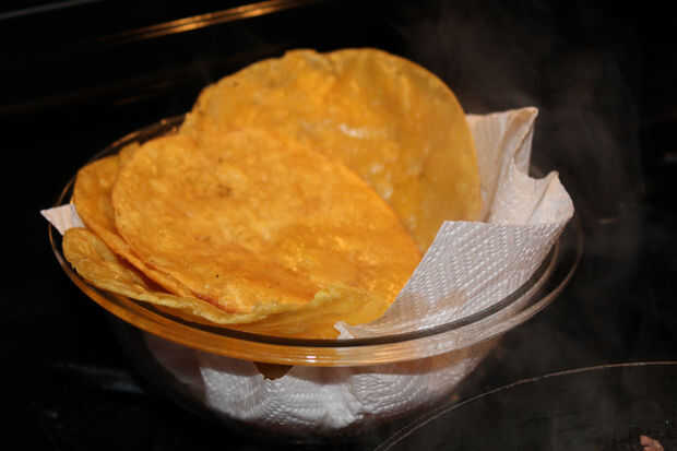Una vez fritas, colocar las tortillas en su placa o tazón de fuente.