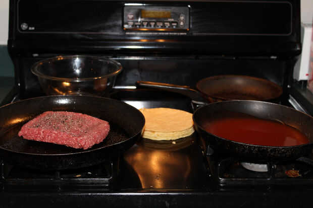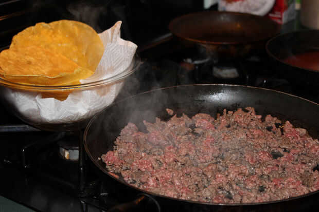 Nota al margen: Sazonar la carne con sal y pimienta o Old El Paso Taco carne condimento.