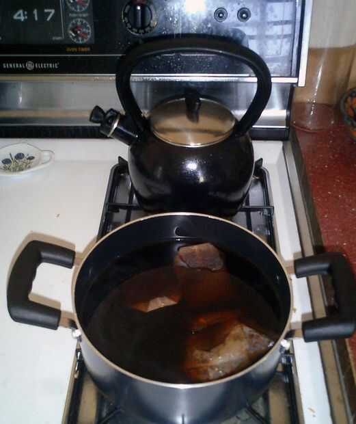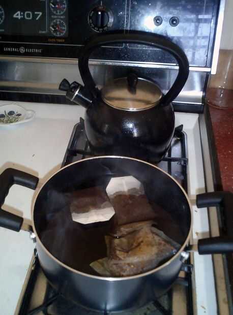 Se podría utilizar una cafetera si estás desesperado y no importa su té cata como el café quemado. Se podrían utilizar un hervidor de agua y una buena jarra. O usted podría utilizar una olla grande; es lo que hago, en estos días, ya que no tengo el tipo de lanzador.
