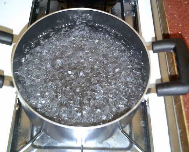 Hervir el agua, apagar el fuego y agregar las bolsas de té.