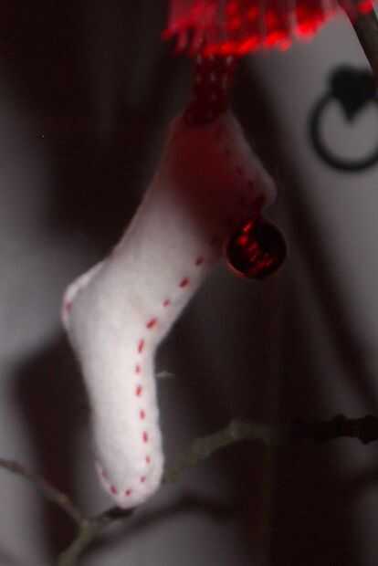 estrecha la cinta roja, blanca o rojo y blanco, unos 20cm (8") por la decoración
