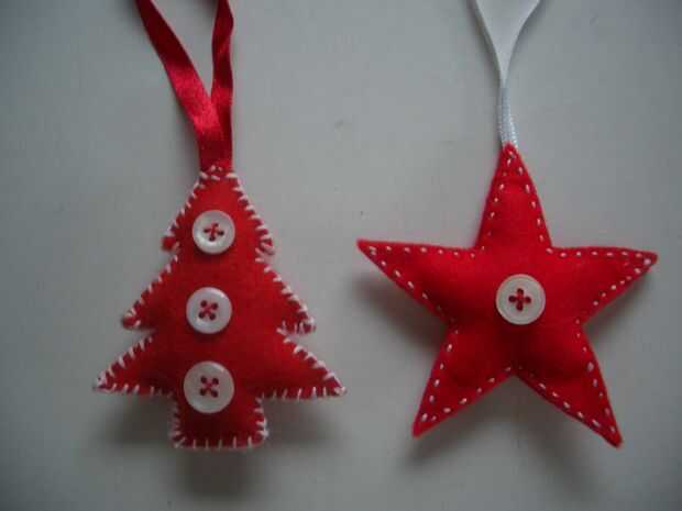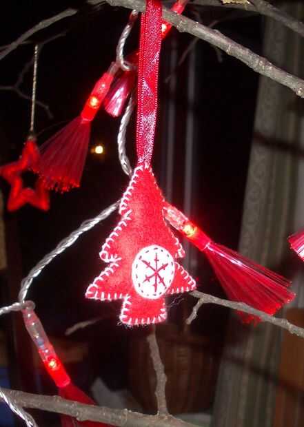 Si no te apetece bordado ambos lados, entonces no. Y si el bordado no es lo tuyo, luego coser unos botones, cascabeles, lentejuelas, pompones mini o cualquier otro en su lugar. Ver la foto del árbol de Navidad y estrella con botones y el de los blancos con una campana roja. Simplemente mantener todo blanco o rojo para que sientan escandinavo.