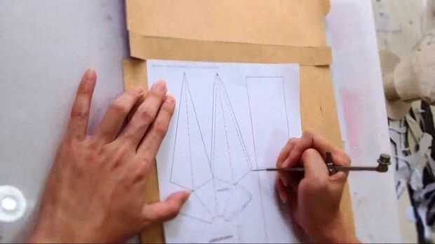 2. plantilla de papel de traza sobre la caja de cereal, cortar con tijera