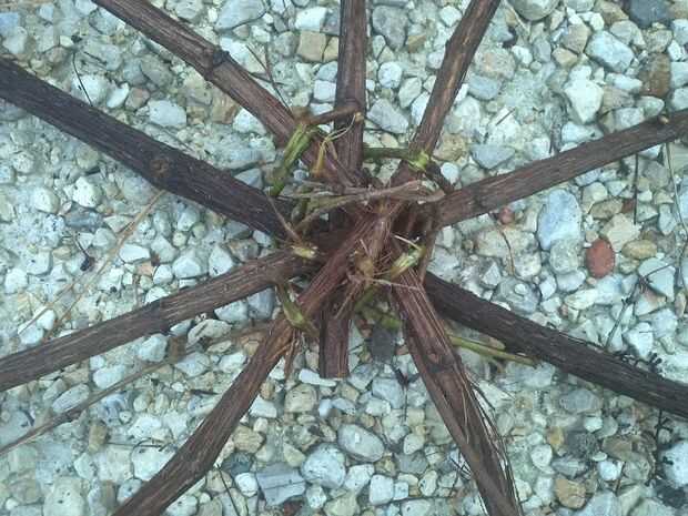 Usted tendrá que cortar una de las ramas largas hasta que tenga un número impar de piezas del marco (ver foto 3, sucursal centro en la parte inferior). Un número completamente no facilitará un tejido adecuado y será imposible construir la cesta correctamente.