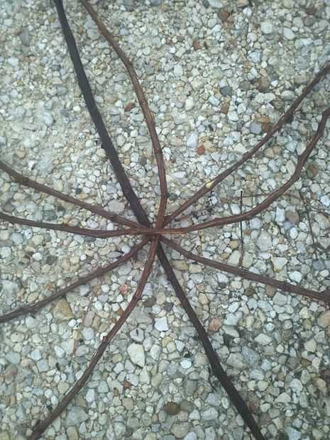 Con un poco de chatarra fina vid o raíces delgadas, atarla alrededor y entre el centro (como se muestra en la foto 2) hasta que las piezas del marco mantenga en su lugar.