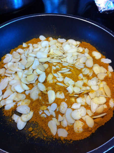 En la misma sartén tostar la mezcla de especias 3-4 minutos a fuego medio alto hasta que usted realmente puede comenzar a oler las especias.